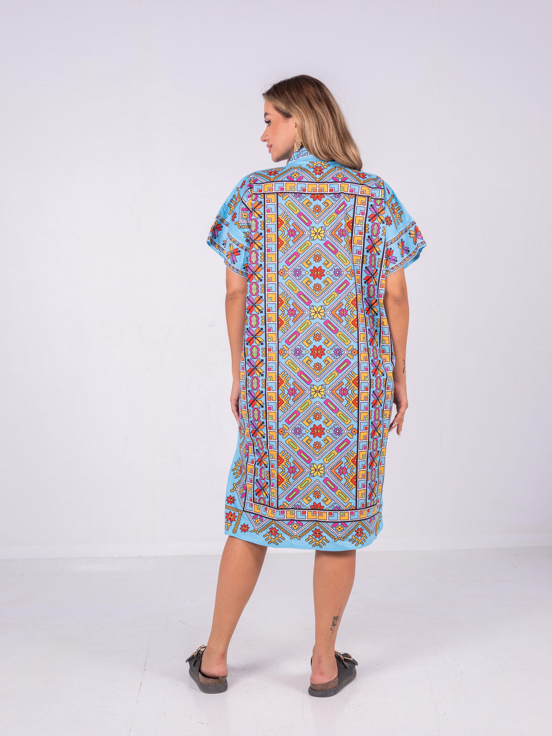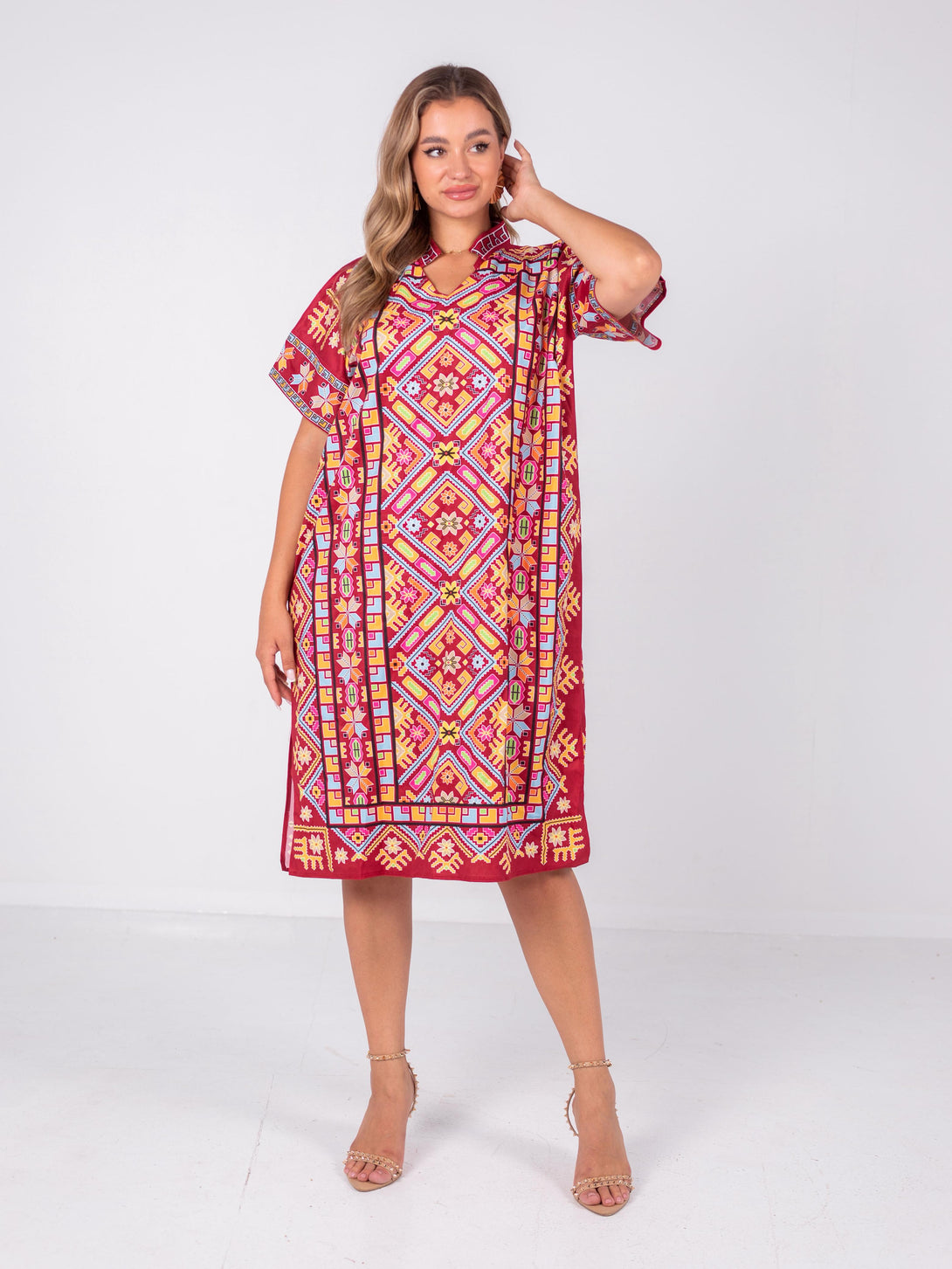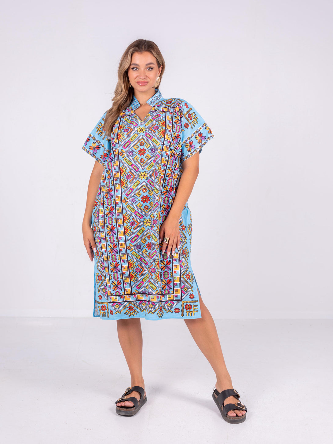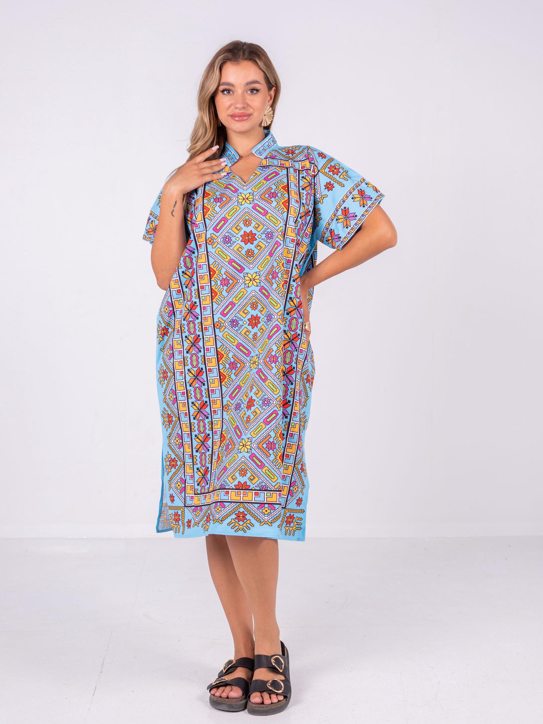 Bring stories of the desert into your wardrobe with this exquisitely detailed kaftan dress, designed for the woman who treasures comfort, culture, and individuality.