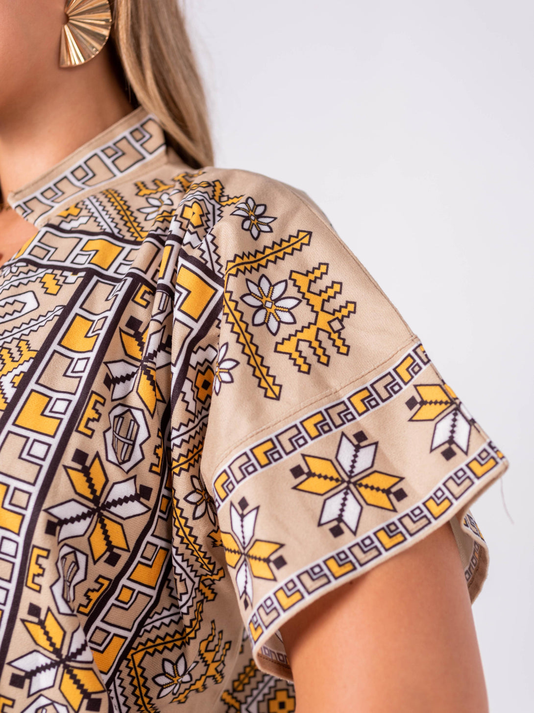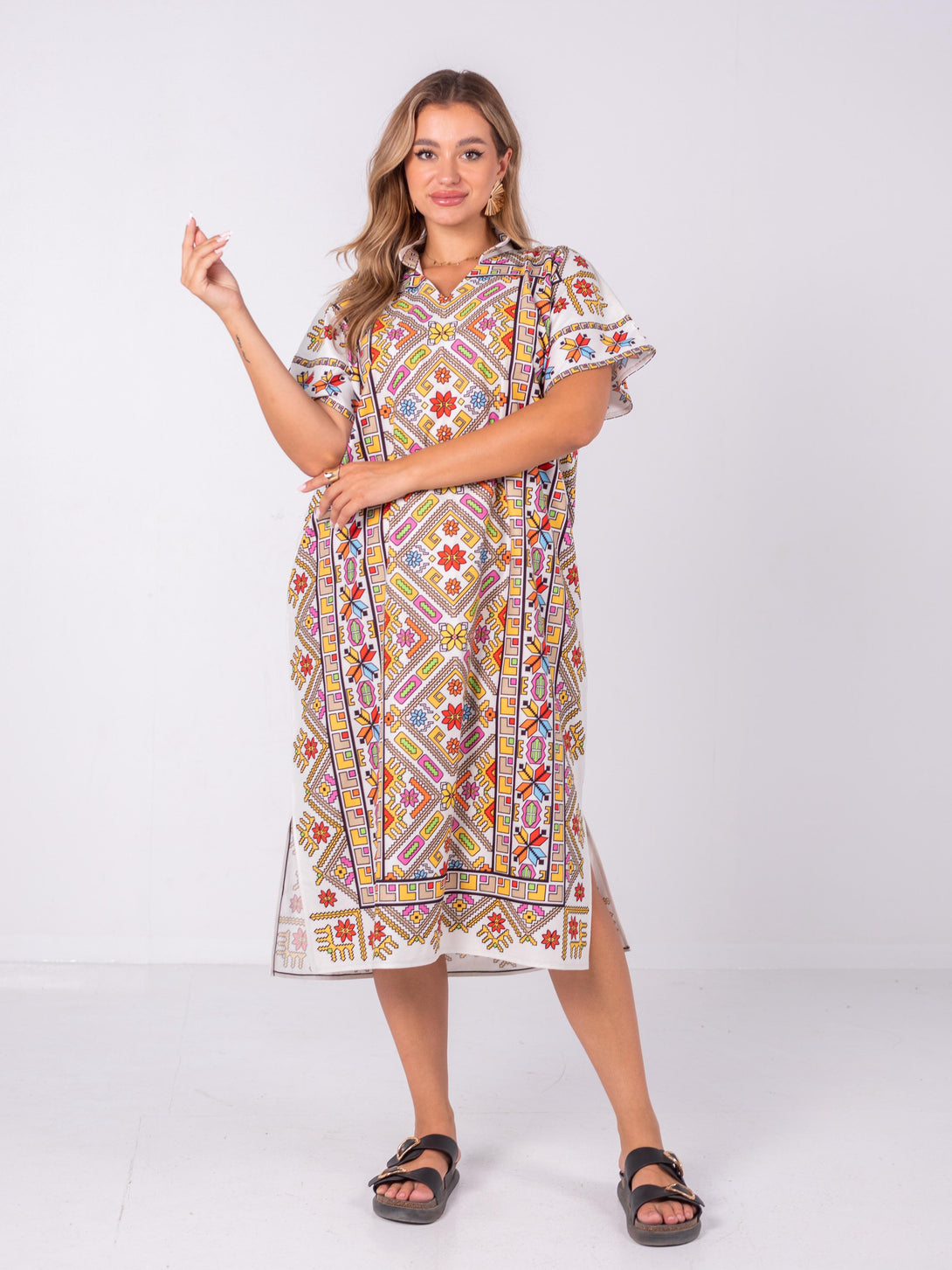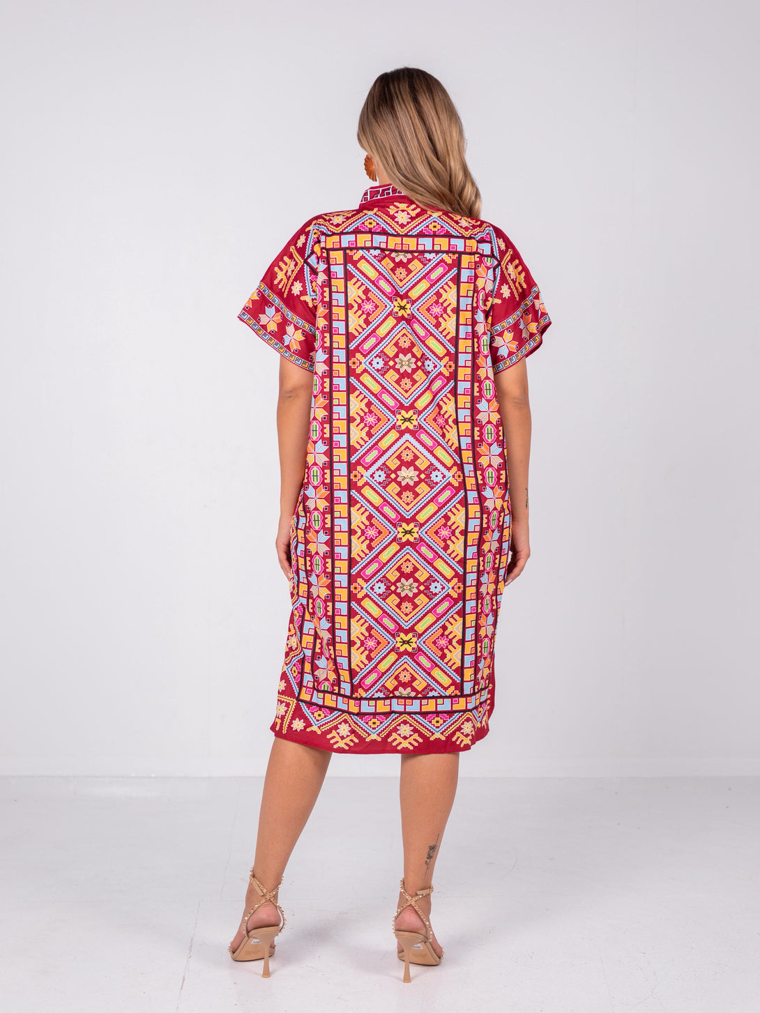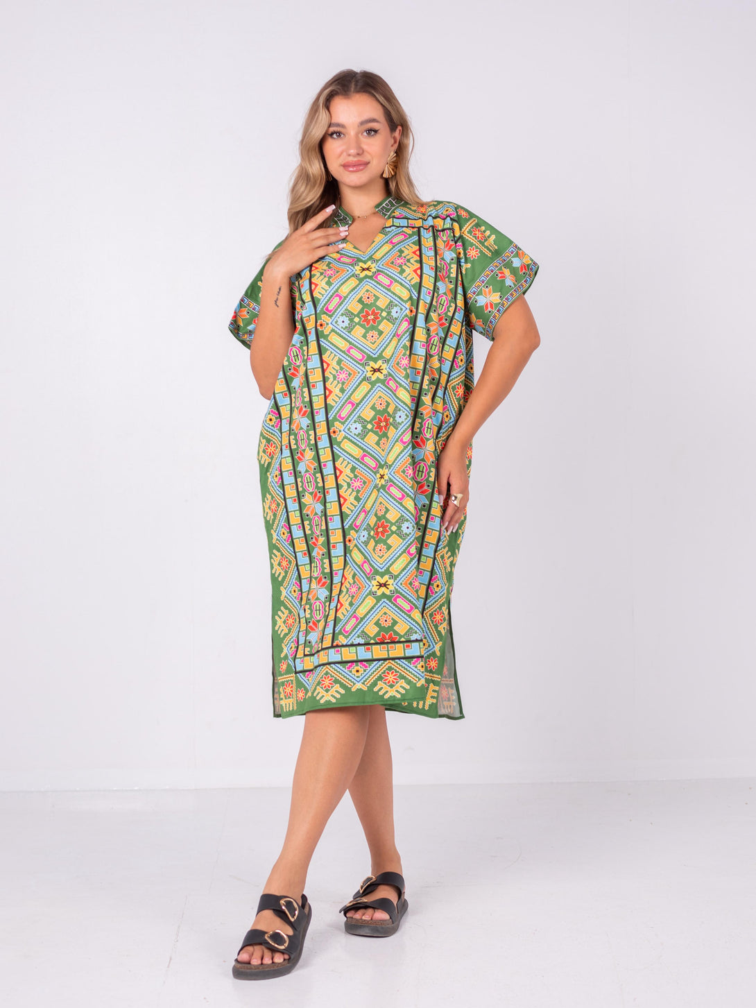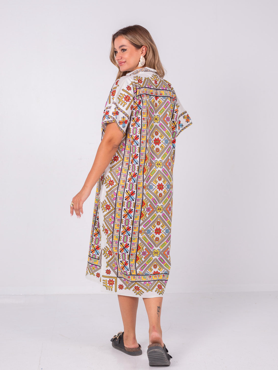 Bring stories of the desert into your wardrobe with this exquisitely detailed kaftan dress, designed for the woman who treasures comfort, culture, and individuality.
