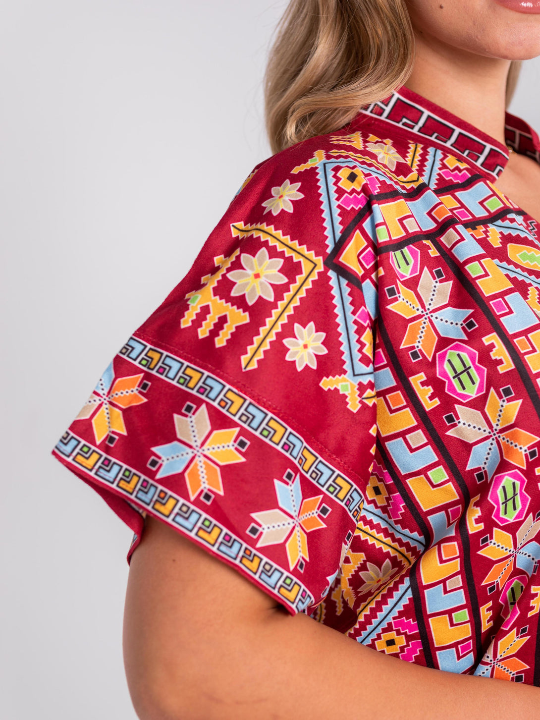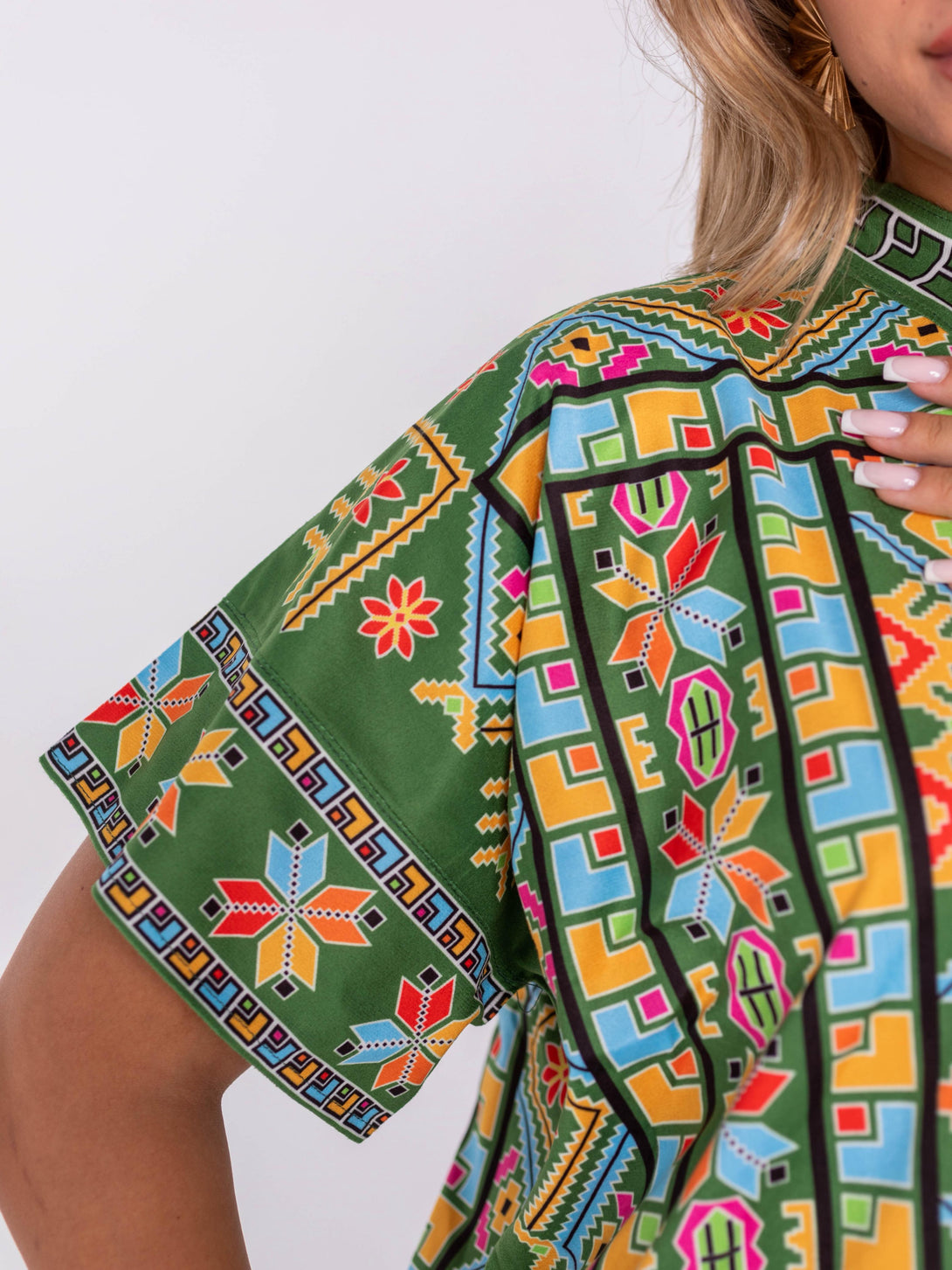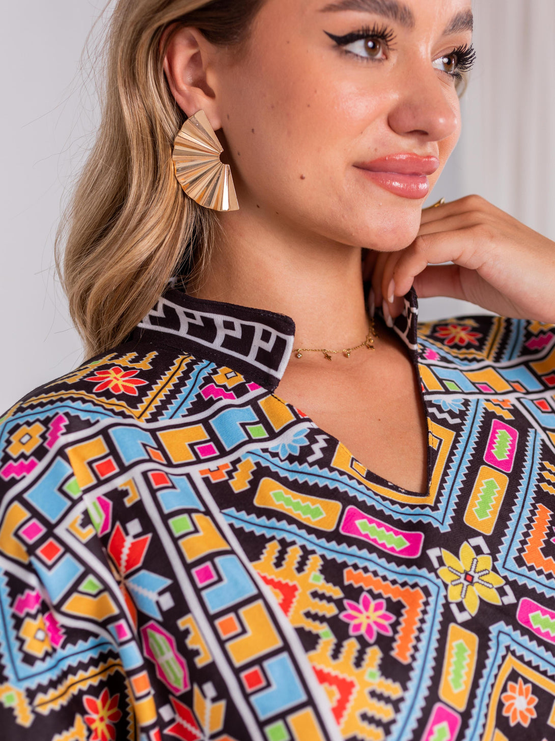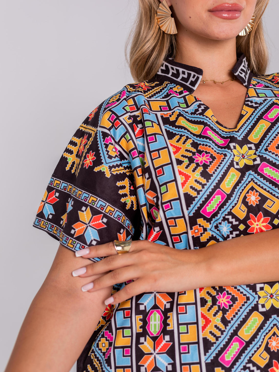 Cut: Relaxed, loose-fit kaftan with wide, short sleeves for ease of movement