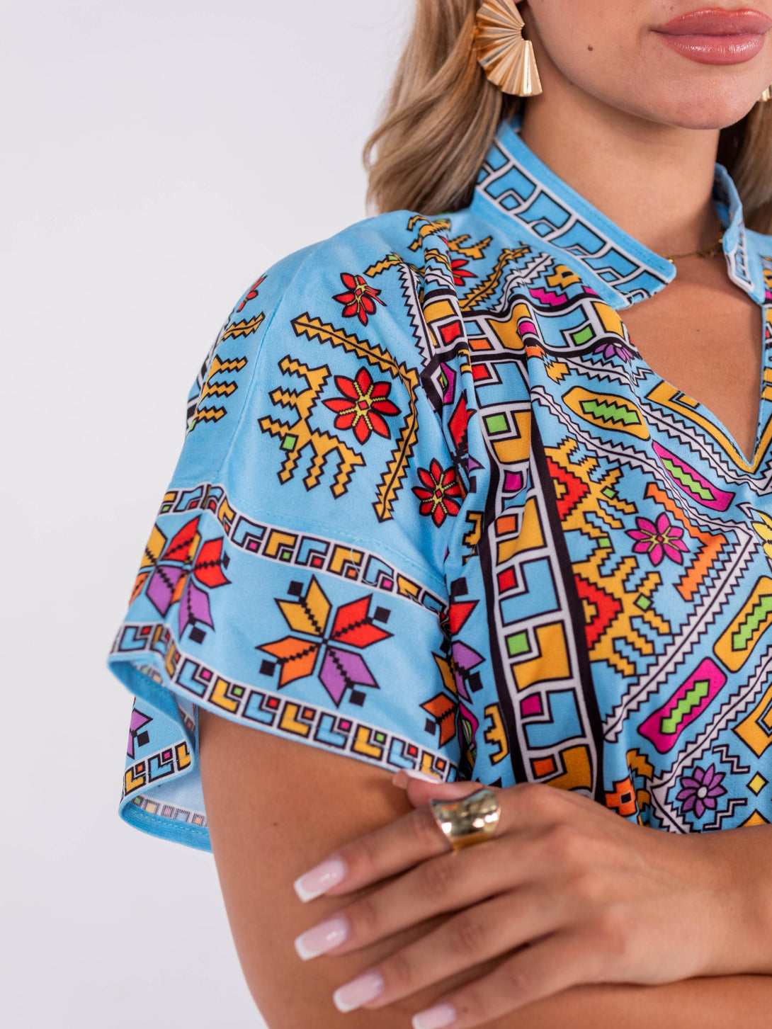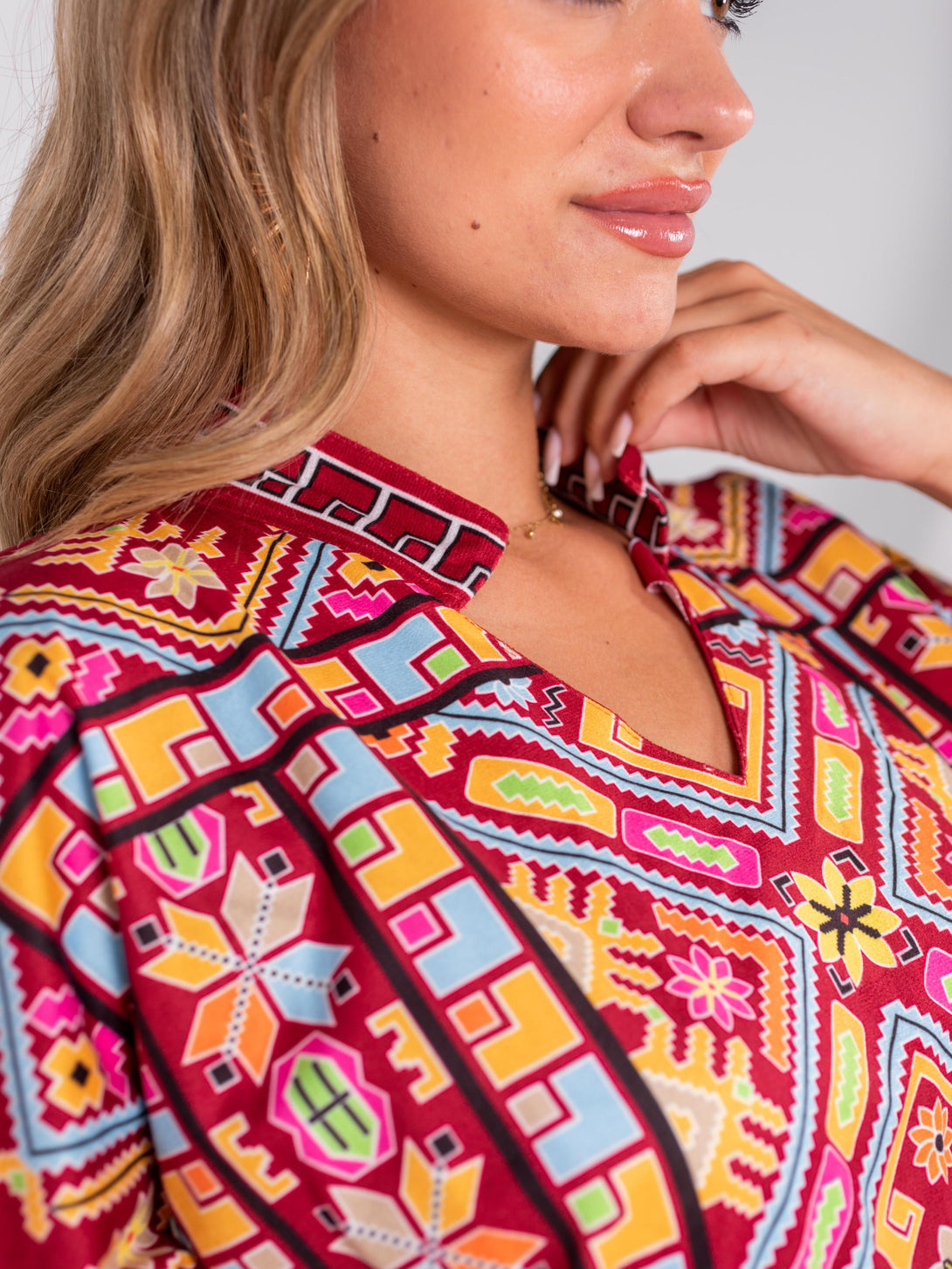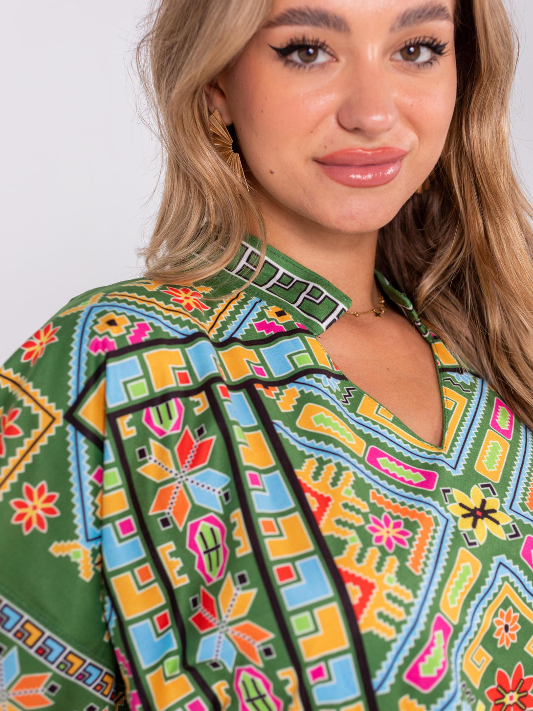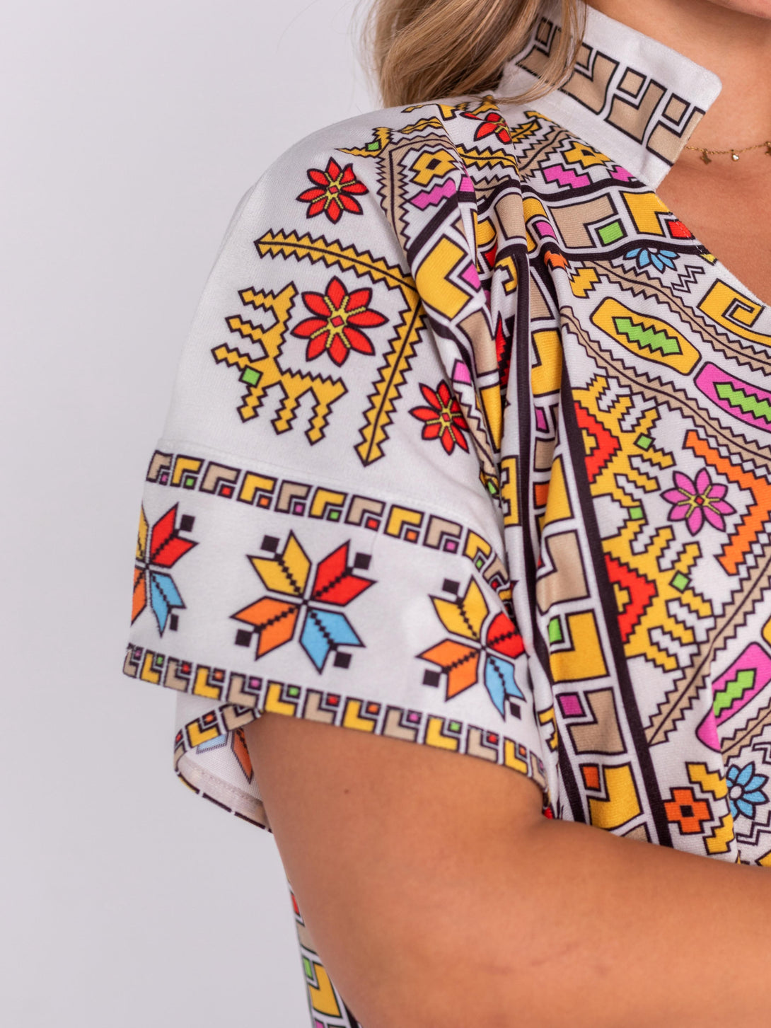Cut: Relaxed, loose-fit kaftan with wide, short sleeves for ease of movement